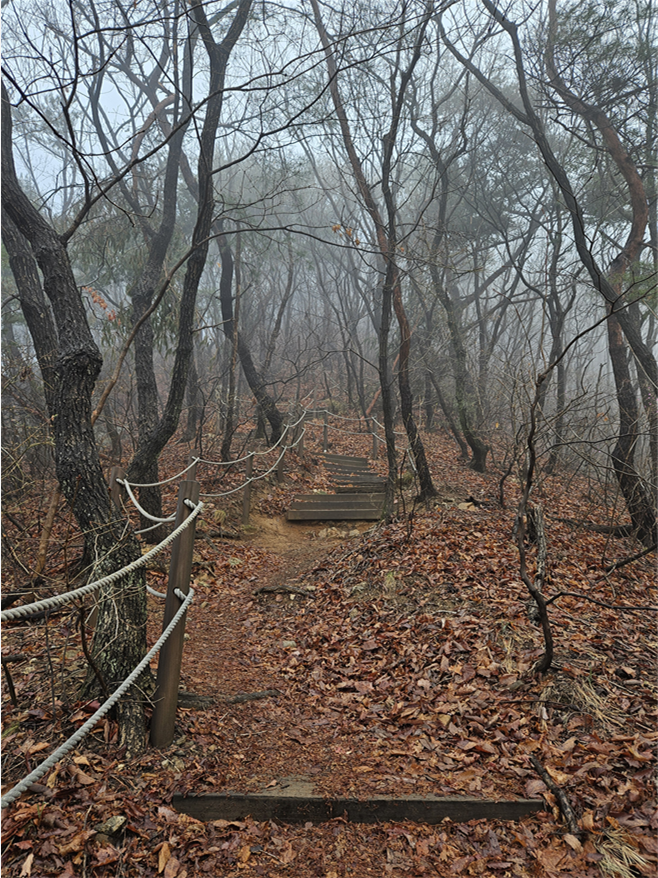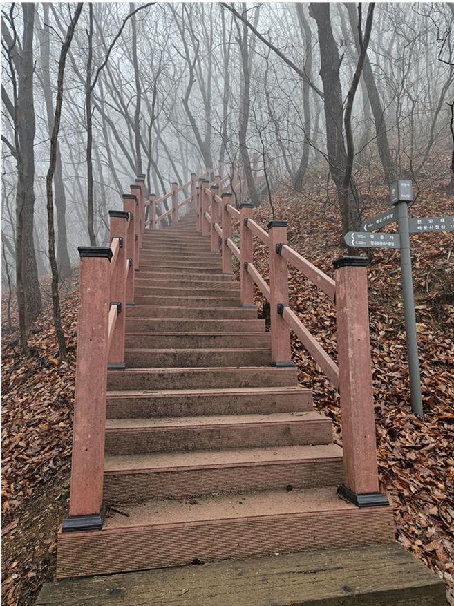 안개가 껴서 그런지 저 계단이 끝이 안보임. 겁나 무서움..
