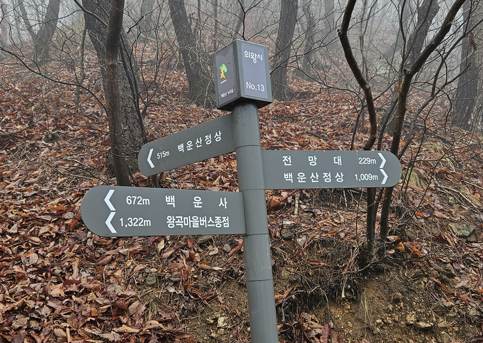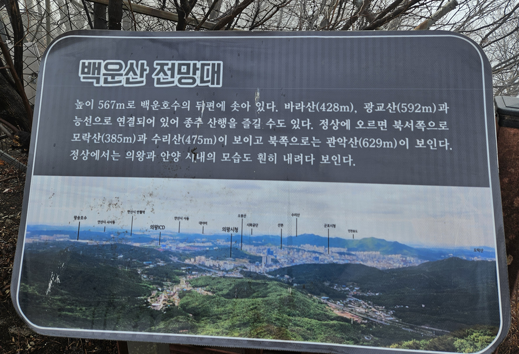 백운사에서 본격적인 등산 코스 진입 초입에 세워진 등산로 안내도